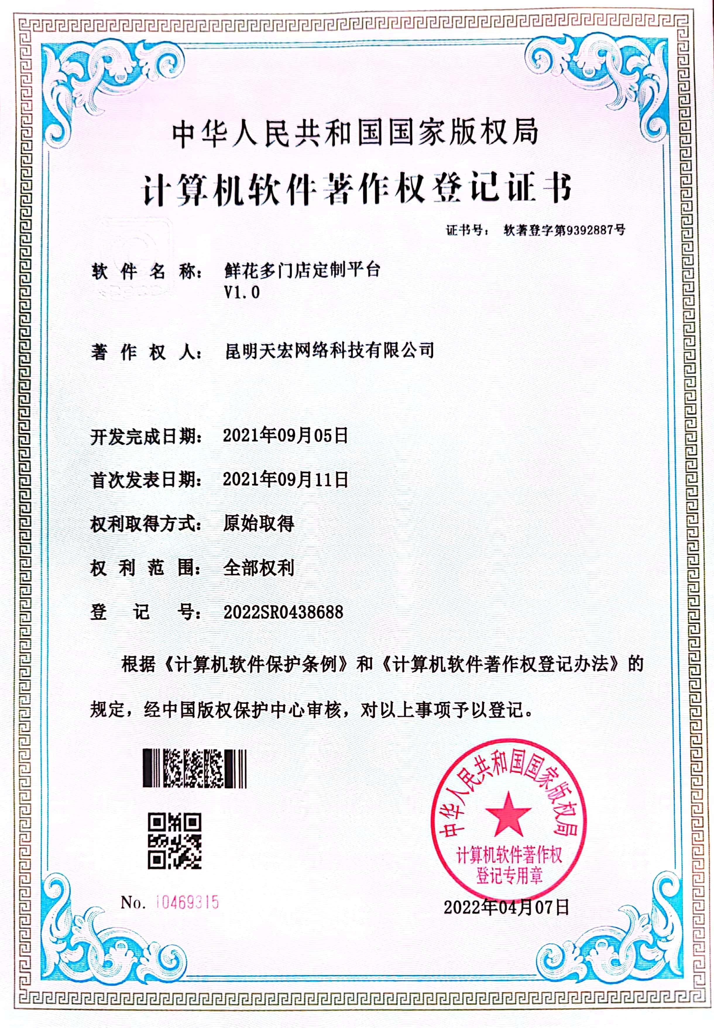 天宏網絡通過不斷的研發(fā)創(chuàng)新,現擁有50多項計算機軟著證書,包括多商家點餐系統、門店收銀管理系統、通用OA協同辦公管理系統、智慧商圈運營管理平臺、天宏健康智慧+系統、同城O2O管理系統等。